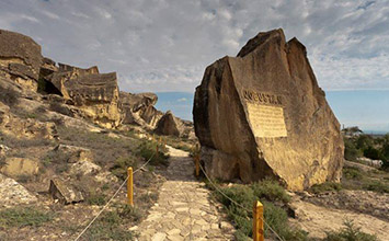 "Музей петроглифов" — так называют Гобустан — горное местечко на юго-востоке Большого Кавказского хребта, расположенное в 65 км к югу от Баку. Именно здесь были найдены древние стоянки первобытных людей, оставивших после себя множество наскальных изображений — петроглифов. Эти первобытные памятники искусства отображают культуру, хозяйство, мировоззрение, обычаи и традиции древних людей. Когда-то море плескалось прямо у подножия этих гор, но потом отступило, оставив на отполированных скалах характерные рельефные следы.